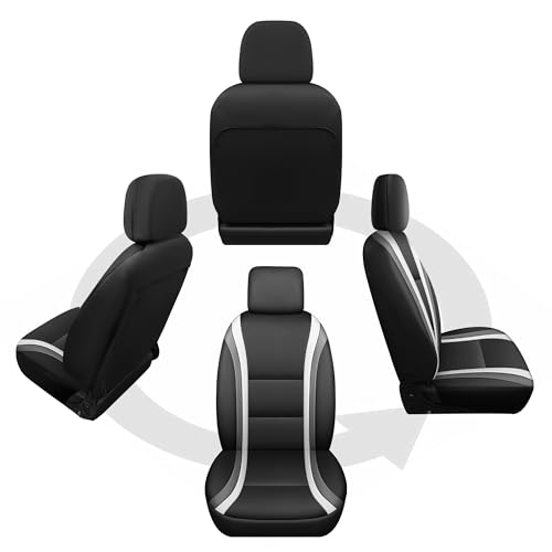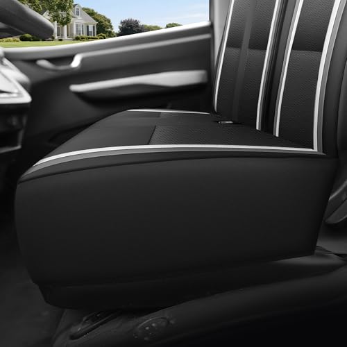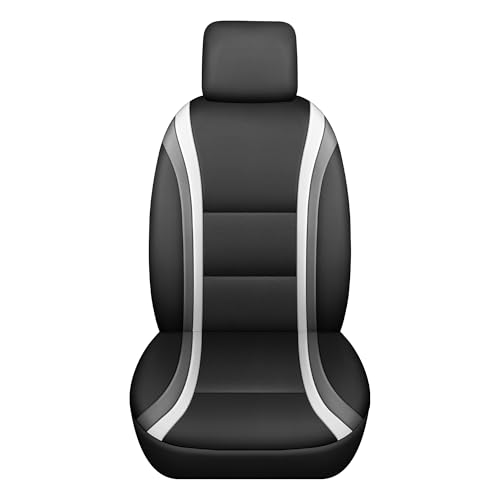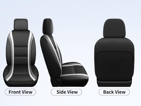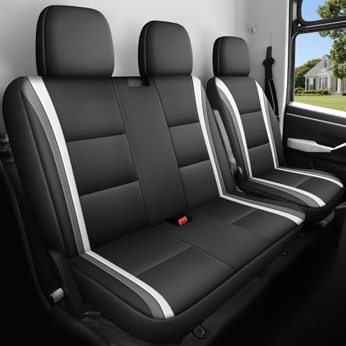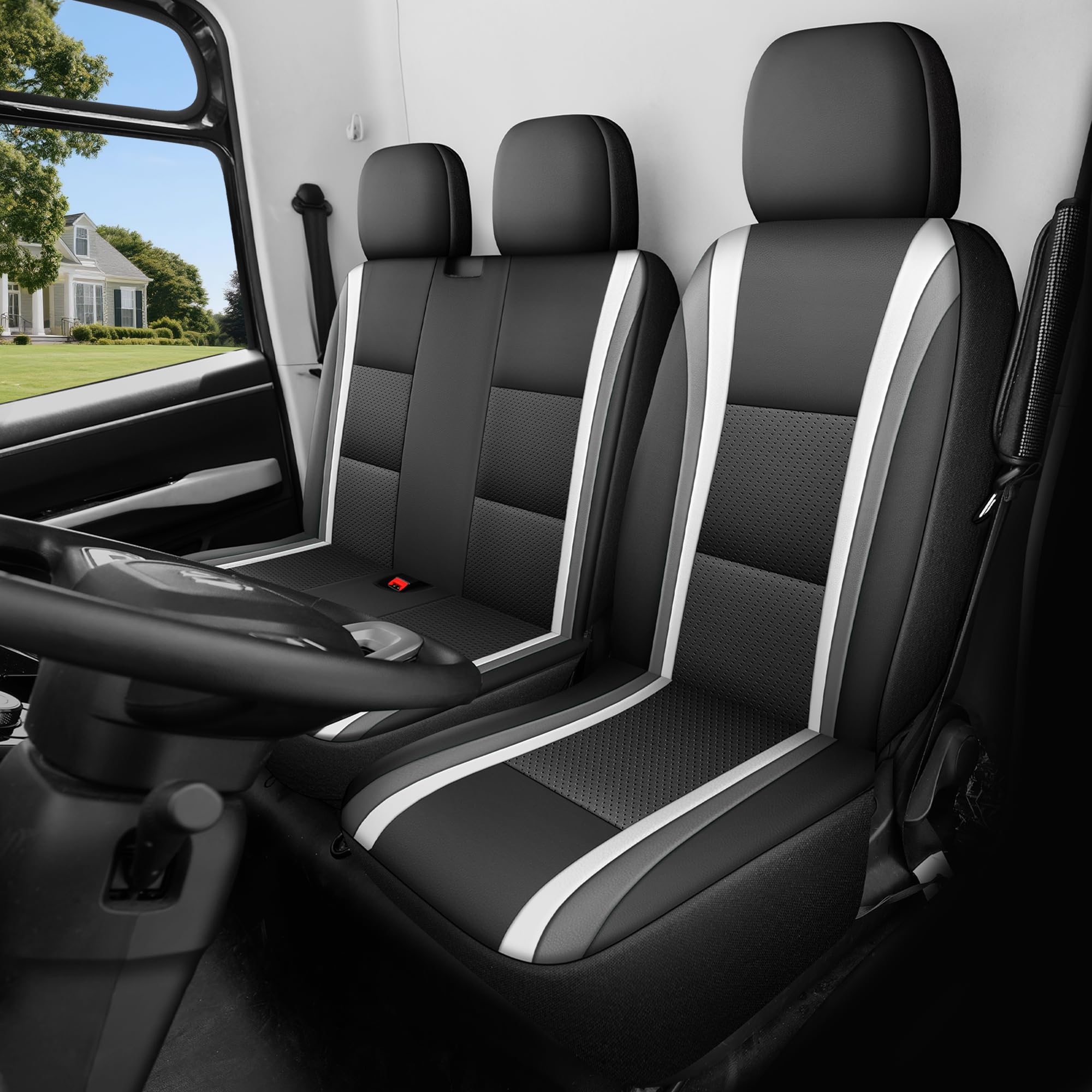 PREMIUM DESIGN: PU leather van seat covers featuring striking black base with sporty grey and white side stripes, offering both style and protection