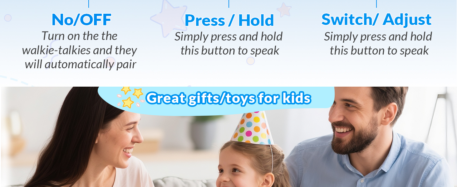 - 【Holiday Gifts】Perfect for boys and girls! Whether it's a birthday, Christmas, Halloween, Easter, or any other occasion, these eco-friendly walkie talkies will bring endless joy and make them special presents for birthdays or holidays.