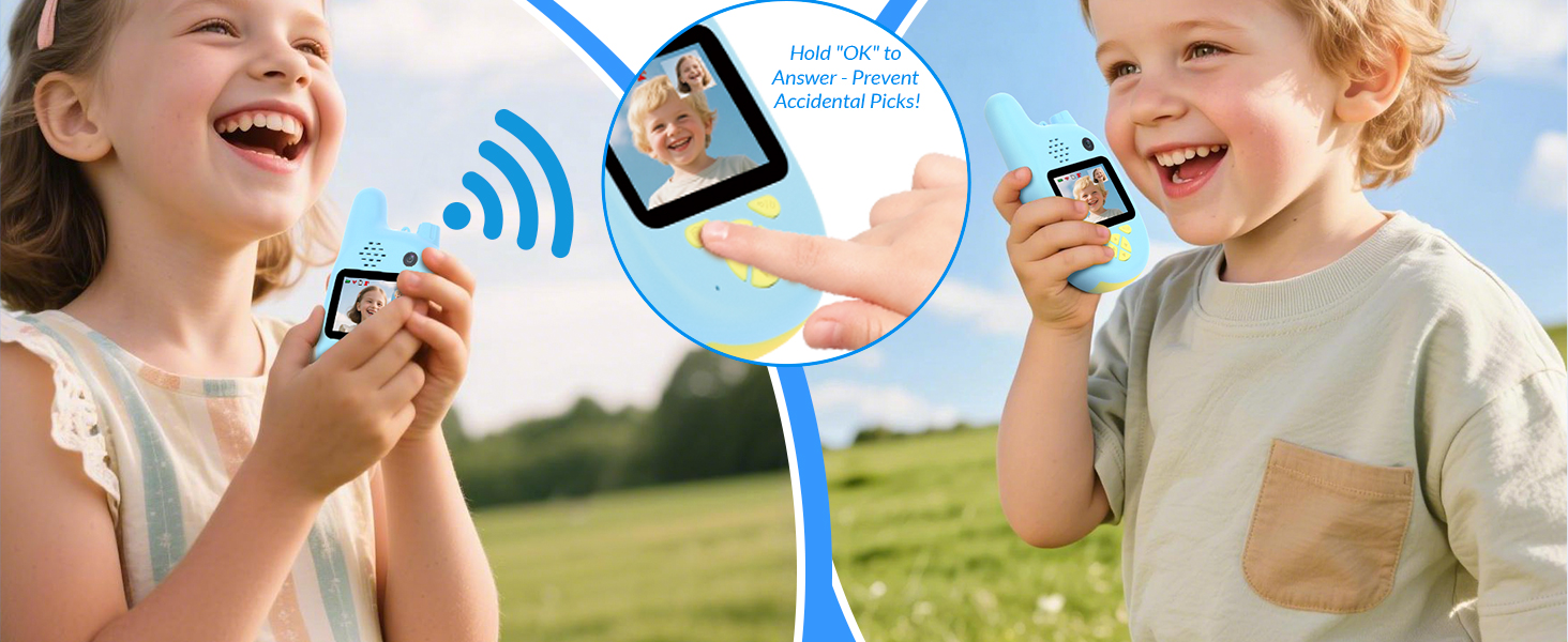 - 【Safe and Convenient】Equipped with one-to-one matching for secure connections and a simple one-click pairing process, the Kids Video Walkie Talkies offer convenience and safety for parents, making them an ideal gift for birthdays and holidays.