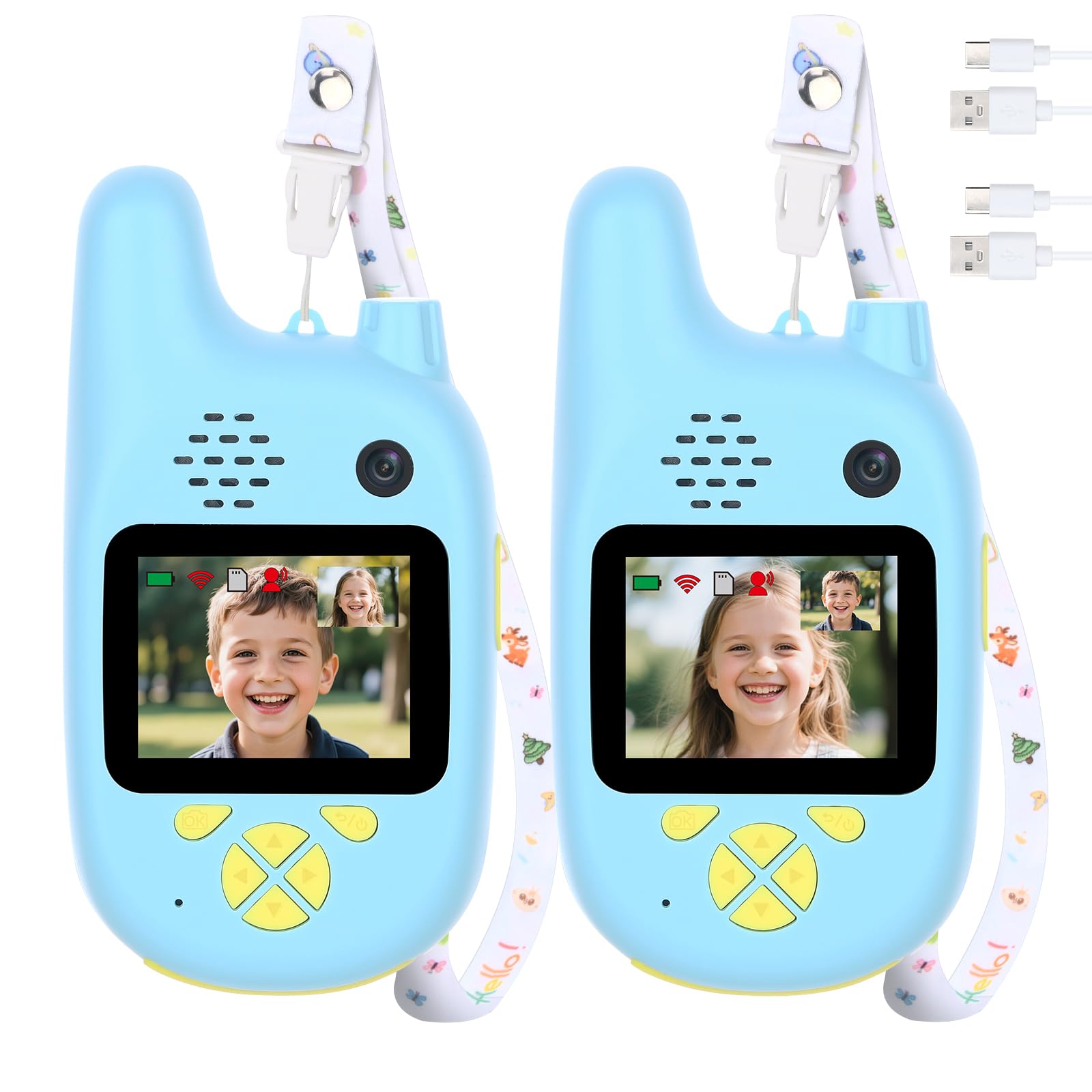 Mafiti Video Walkie Talkies for Kids with Dual Camera,2 Pack Rechargeable Kids Walkie Talkies Toys Gift for 3-9 Year Boys Girls,Support Photo Capture Voice Chat Features(Blue+Blue)