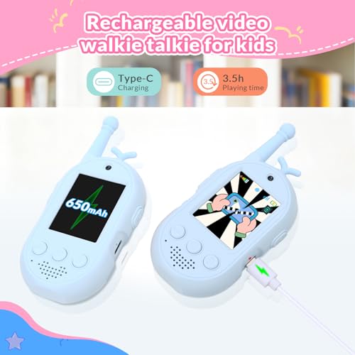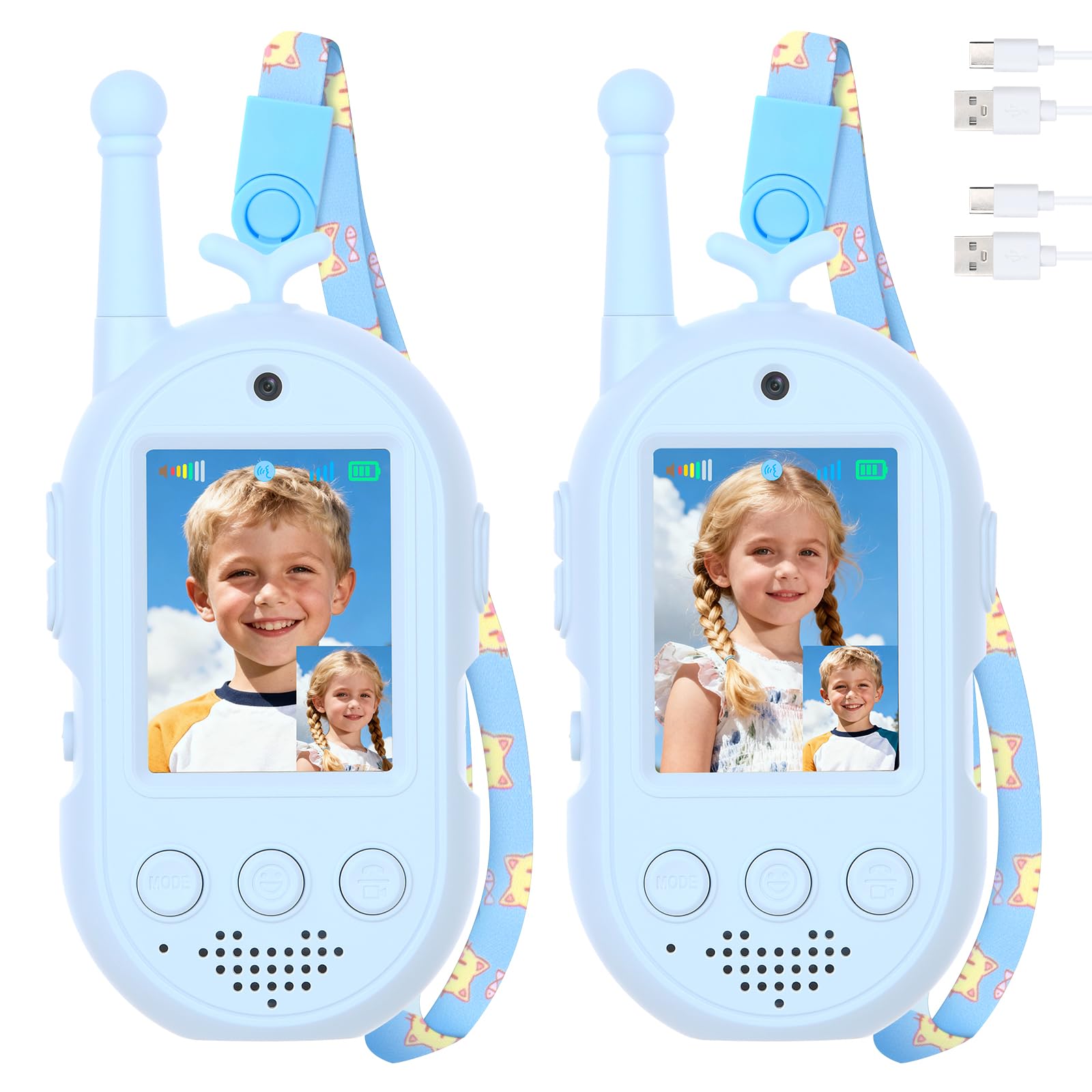 Mafiti Video Walkie Talkies for Kids,2 Pack Kids Walkie Talkies Rechargeable,1000 Feet Range,Fun Toys for Indoor Outdoor,Christmas Birthday Gifts for Boys and Girls Ages 3-12(Blue+Blue)