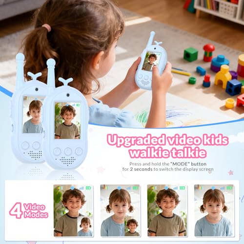 - 【Upgraded Multiple Functions】4 interesting voice changing effects, 4 video modes, and 5 Photo Stickers, Our kids video Walkie Talkie has multiple functions for children to explore and bring great joy to them