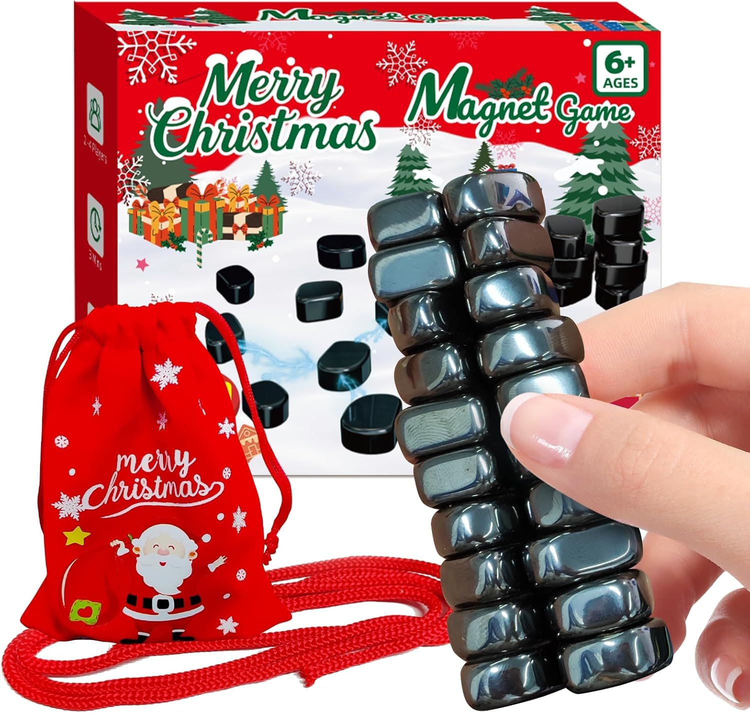【Christmas Magnet Strategy Game】Package contents: 20 x magnetic stones, 1 x red game rope, 1 x Christmas storage bag, 1 x game instruction manual.