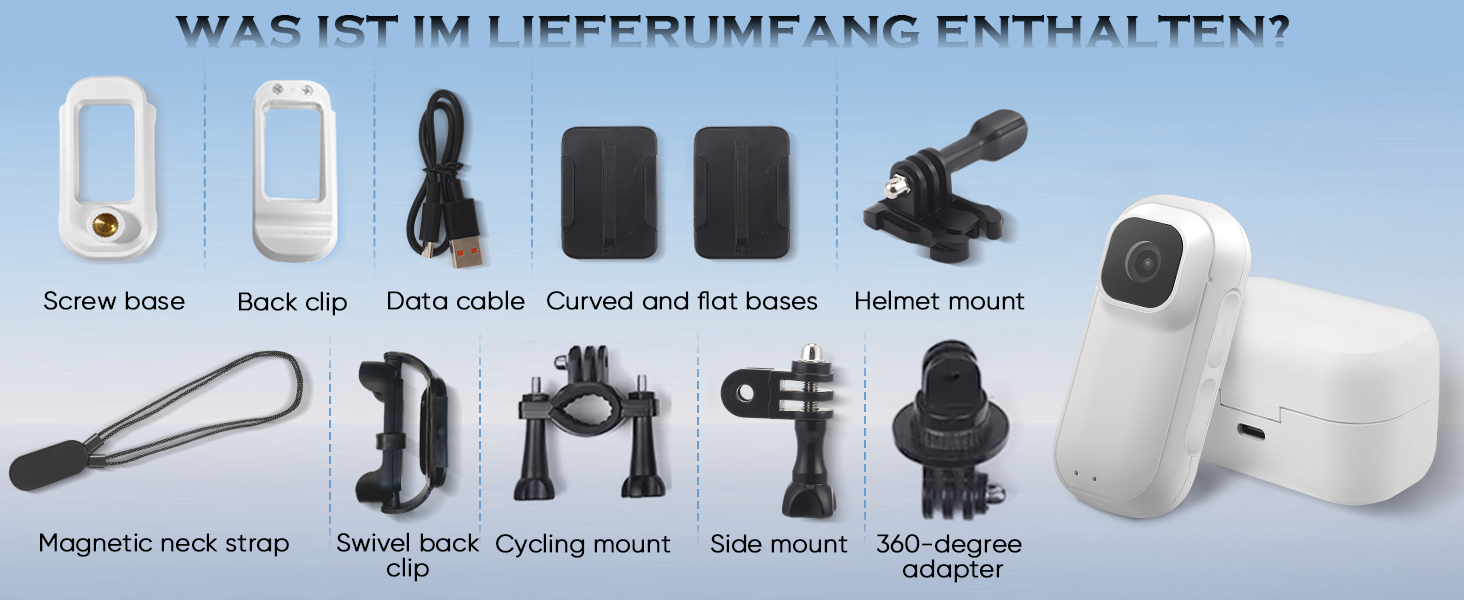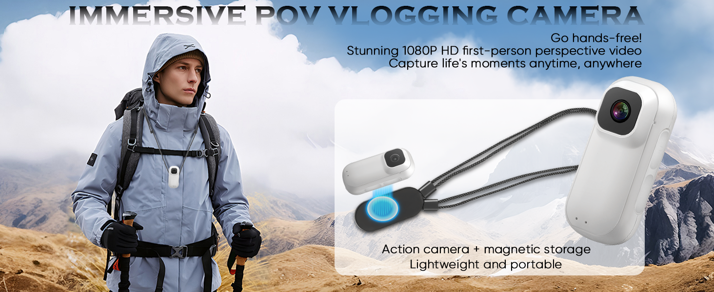 Versatile & Hands-Free Filming Options:Experience total filming freedom with the strong magnetic mount—easily attach it to gym equipment, railings, or your car for unique angles. The kit also includes a lanyard, lapel clip, and dedicated mounts for use as a helmet or body camera. Perfect for POV shots and discreet recording.