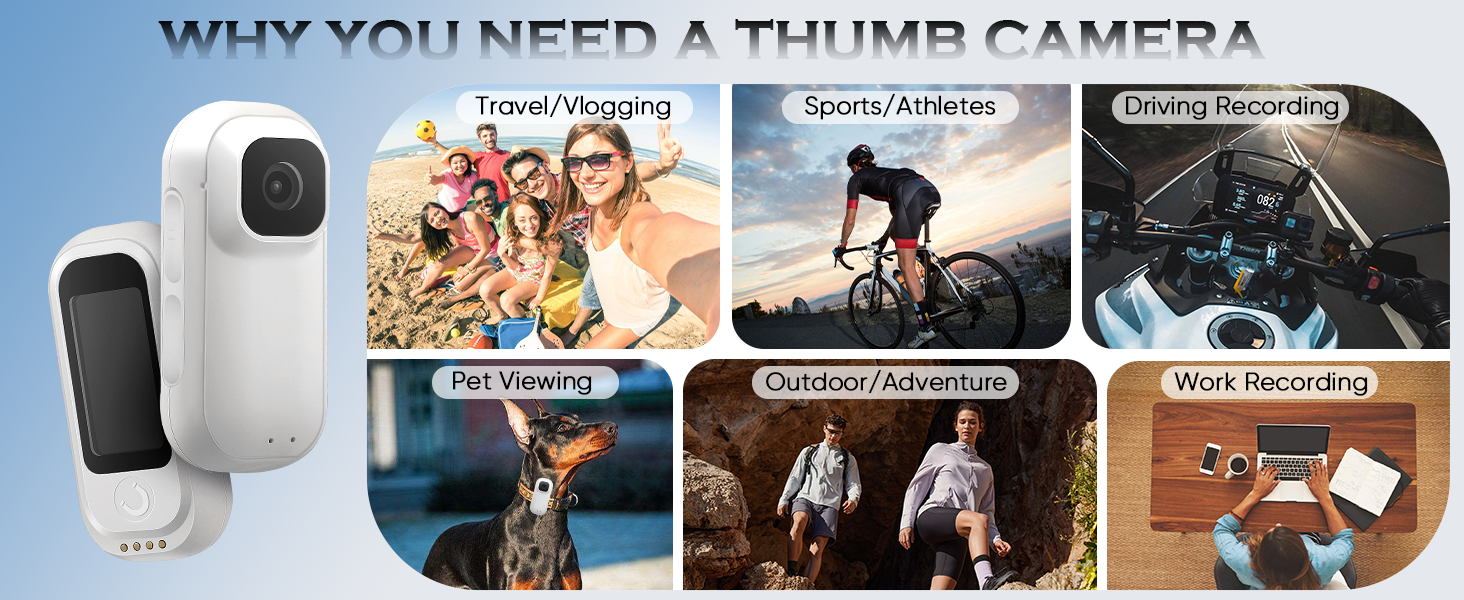 Compact & Lightweight, Perfect for On-the-Go Moments:This mini thumb camera is designed for everyday adventures. Whether you're cycling, vlogging, or capturing playful pet moments, its ultra-lightweight build offers comfortable, hassle-free filming all day long.(Viidure Search for this app)