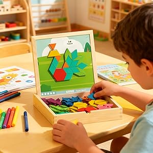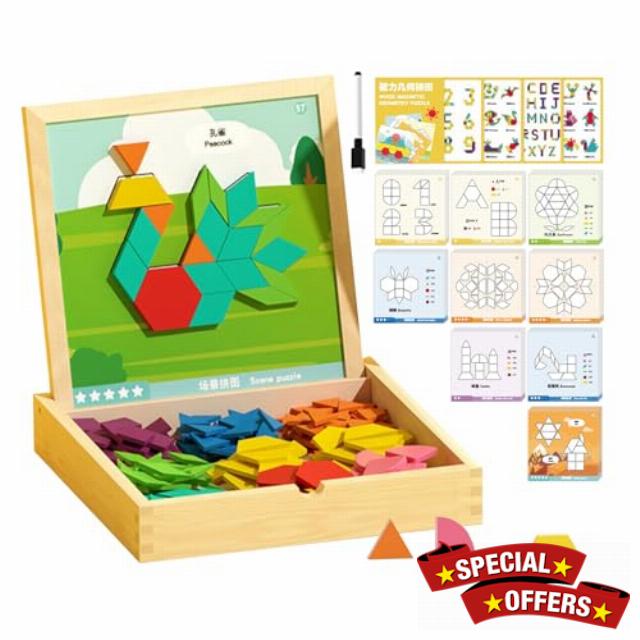 - Cognitive Development Toy: Magnetic Tangrams function as a cognitive development toy, combining the benefits of a tangram brain game with stem learning principles to encourage logic puzzles and problem-solving abilities, perfect for home education or interactive family activities