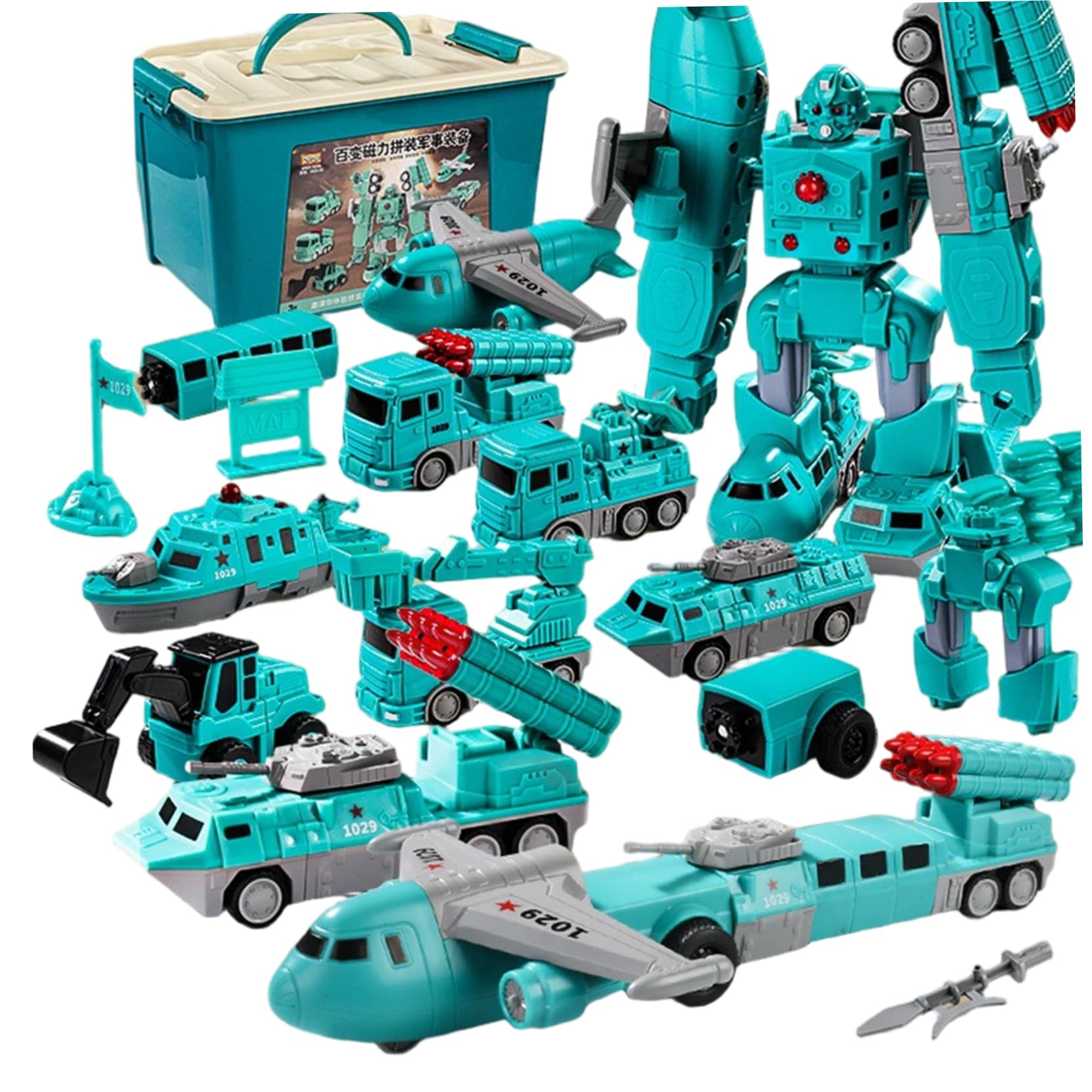 Magnetic Toys for Kids 35PCS/Set Assembled Army Style Magnetic Robocar Set Educational Plastic Transforming Toys for Kids Army Transforming Cars Robot Car.