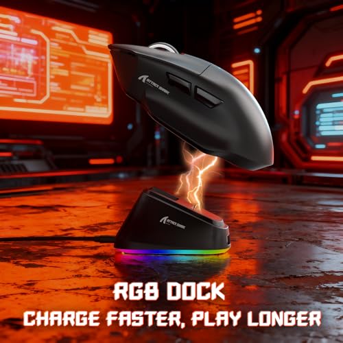 【Magnetic Dock & Long-Lasting Playtime】The V6 gaming mouse features a magnetic charging dock for quick and convenient charging, including an RGB button on the base to toggle lighting effects and customize your gaming ambiance. Powered by a 500mAh rechargeable battery, it delivers up to 200 hours of uninterrupted gaming or work.
