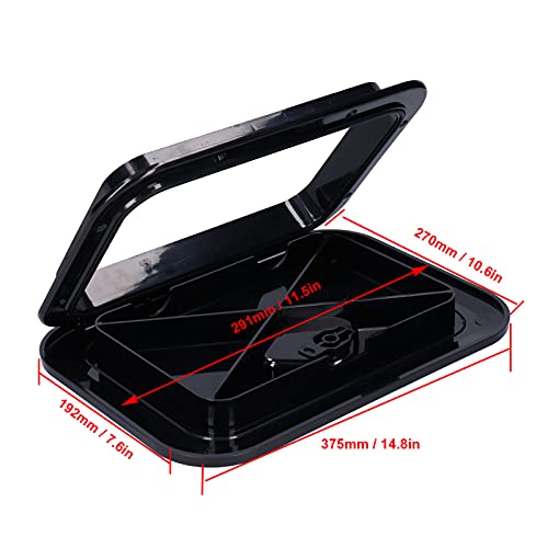 Spec: Item Type: Deck Access Hatch Material: ABS Color: Black Size: Approx. 375 x 270mm/14.75 x 10.6in Opening Size: Approx. 291 x 192mm/11.5 x 7.6in