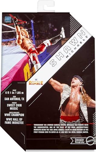 The Shawn Michaels 6-inch figure comes with multiple pieces like swappable heads and hands, plus iconic ring gear — switch up his expression and stance!