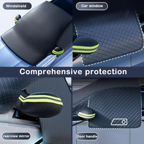 【Full Door Handle Coverage】Say goodbye to the risk of frozen door handles and damaged retractable door handle motors. Our windshield cover completely covers the door handles, so you don't have to worry about frozen door handles and frozen hands during snowstorms, and you can easily get into your car.