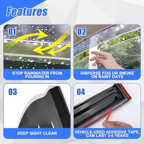 - – Enhanced Airflow And Rain Protection: Our side window visors allow for fresh air circulation while blocking rain, making them ideal as ventilation visors. Experience efficient air flow that reduces window fogging and ensures a comfortable ride in any weather.