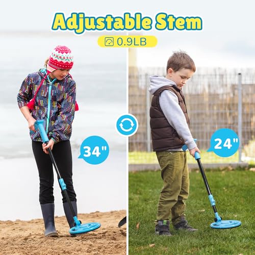 Metal Detector Kids, Usb Rechargeable Kids Metal Detector with Simple Display, 24″-34″ Adjustable Metal Detectors for Children, 7.36″ Plus Search Coil, Outdoor Toys for Kids 8-12, Blue