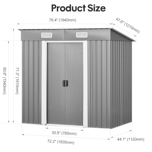 - DIMENSIONS: Large storage capacity with measurements of 183 cm length x 112 cm width x 181cm height, perfect for garden tools and outdoor equipment