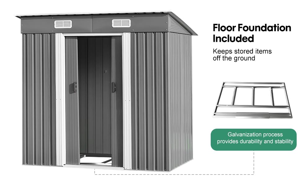 - FOUNDATION: Includes elevated floor foundation to keep stored items off the ground, preventing moisture damage and ensuring stability