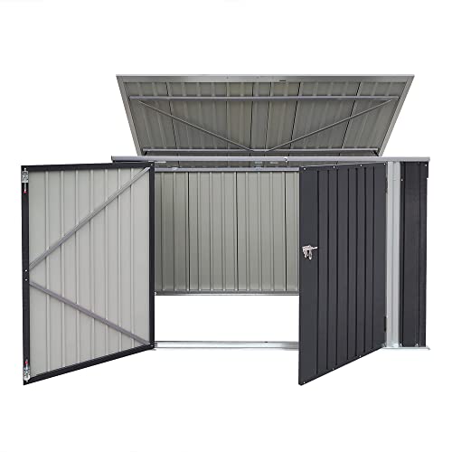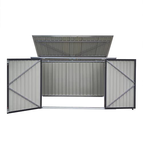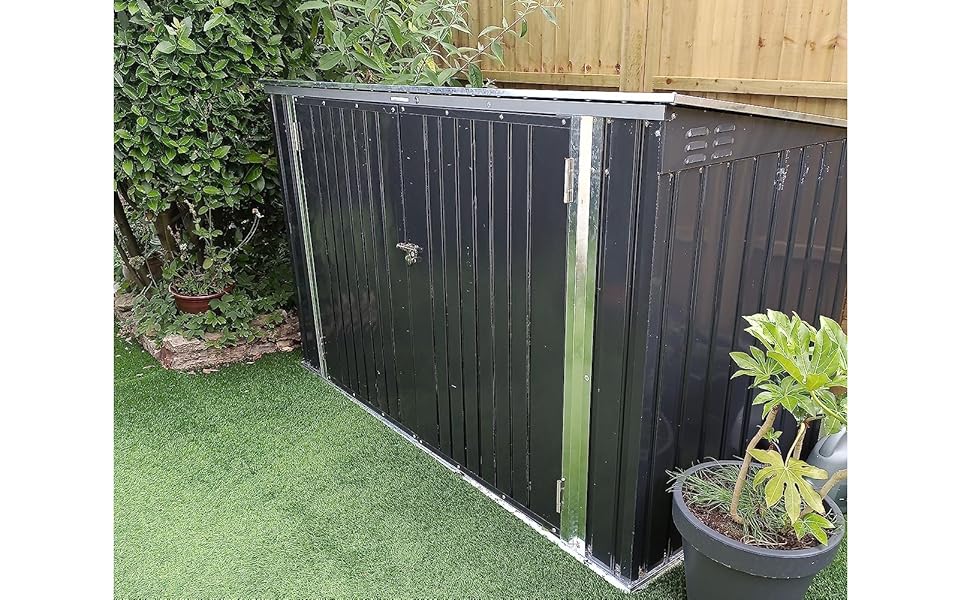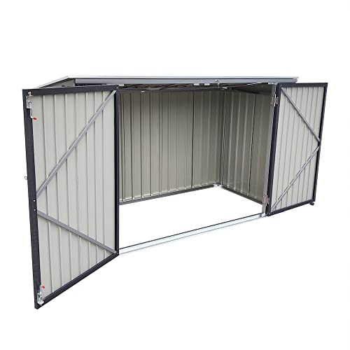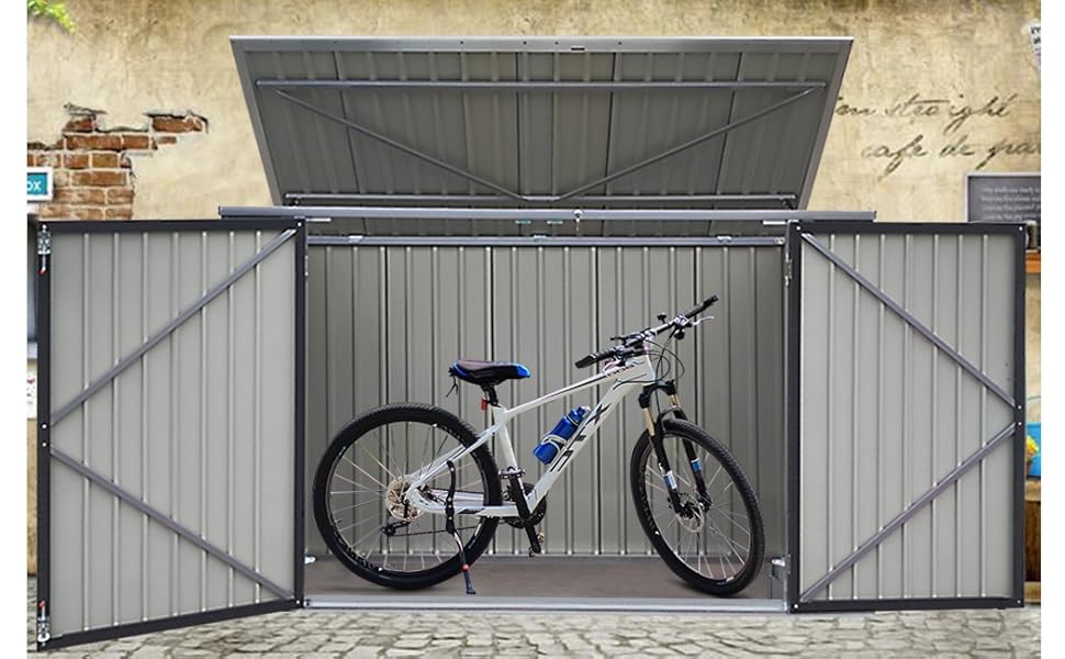 - VERSATILE OUTDOOR STORAGE: Metal steel garden shed designed for storing bicycles, tools, garden equipment, and outdoor accessories in a secure and organised manner,Overall Size: D105x W210x H130cm ,can contain about 2-3 adult bikes