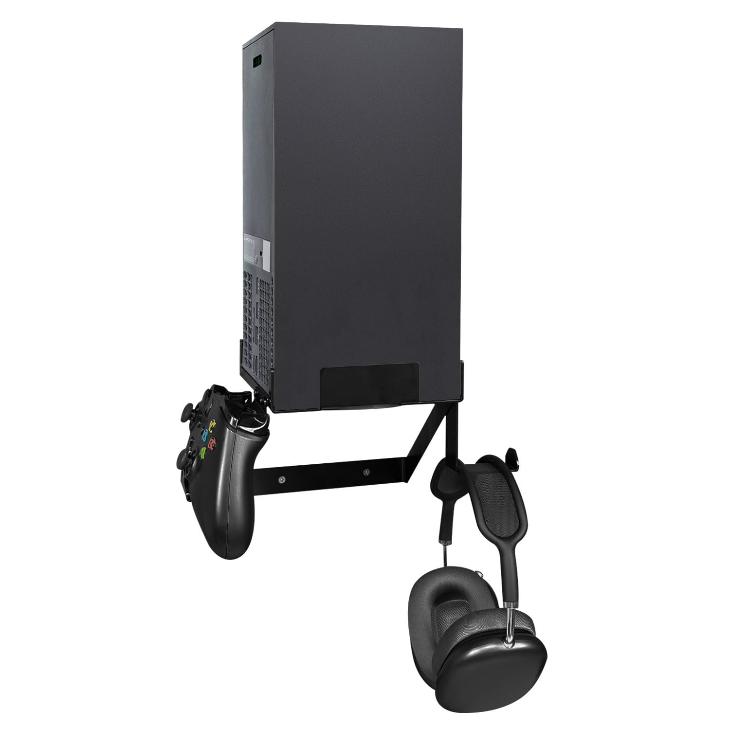 Metal Vertical Wall Mount Compatible with Xbox Series X, Securing Wall Bracket with Detachable Controller & Headphone Holder Ki