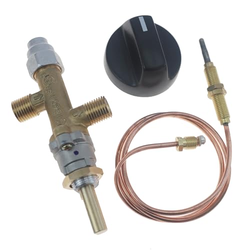 METER STAR Propane LPG Gas Fire Valve, Safety Valve, Flame Failure Protection, Spigot, Gas Heater Valve with Thermocouple and Button, Inlet and Outlet Both 1/4″ Left Thread