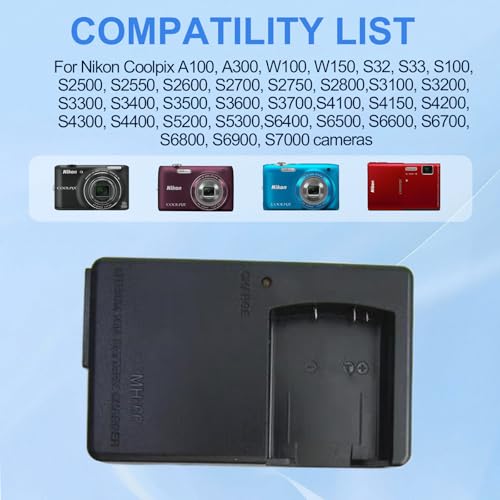 MH-66 EN-EL19 Battery Charger Compatible with Nikon Coolpix A100 S3300 S3400 S3500 S3600 S3700 S4100 S4200 S4300 S4400 S5200 S5300 S6400 S6500 S6600 S6700 S6800 S7000 Camera & 120cm AC Power Cord