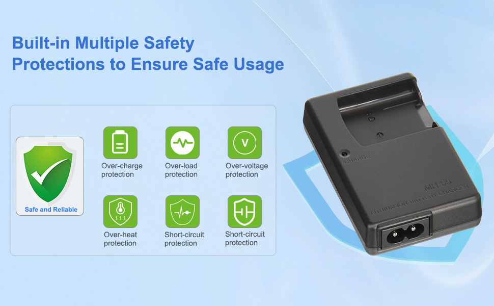The MH-66 battery charger features Over-charge protection,Over-Current protection,Over-load protection, Over-voltage protection,Short-circuit protection, Over-heat protection It is CE and RoHS certified, and has been tested by the manufacturer to match OEM products.