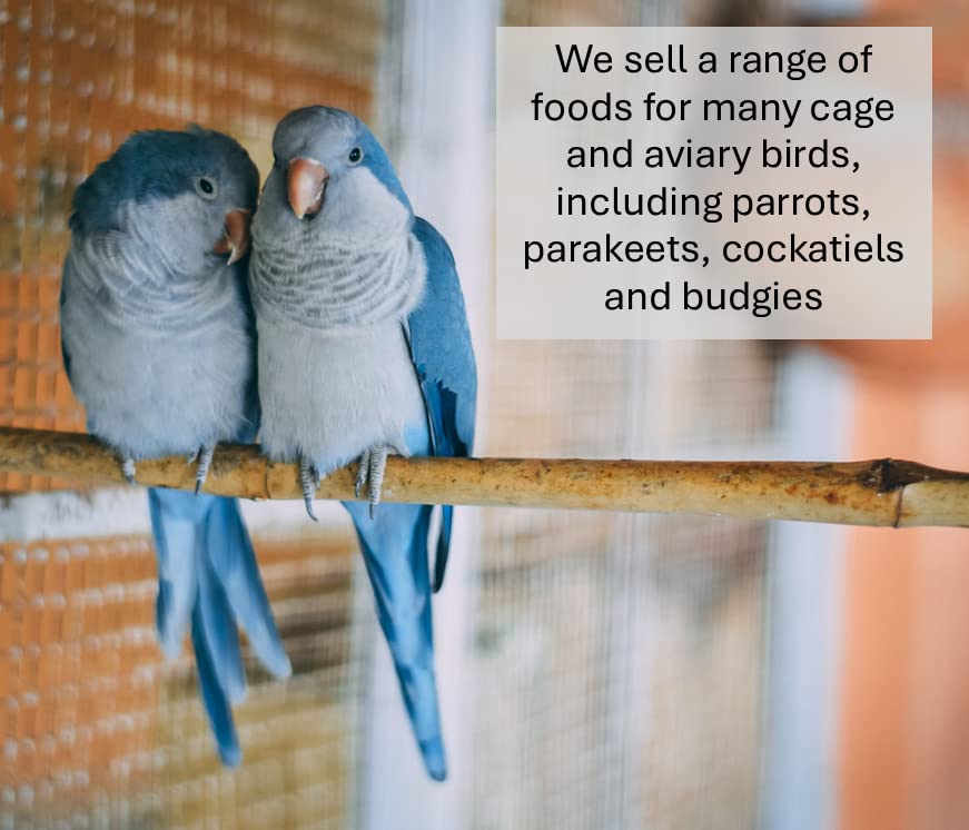 We sell a comprehensive range of feeds for all cage and aviary birds, including seed mixes for parrots, budgies, finches, cockatiels, parakeets, pigeons and canaries.