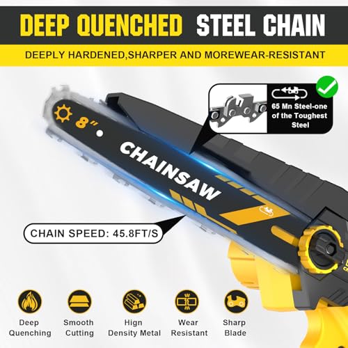 【Fast Cutting Speed Up to 45.8FT/S】: The Gisam mini chainsaw cordless delivers a cutting speed of up to 45.8 feet per second, enabling quick and smooth cuts on branches and wood. This powerful performance helps you finish cutting tasks efficiently, no more struggling with slow tools, perfect for daily gardening or DIY woodworking.