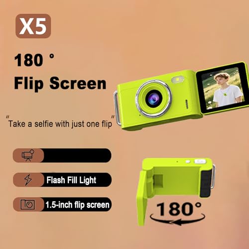 - 1.5-Inch 180-Degree Flip Display Screen: The digital camera for beginners comes with a 1.5-inch 180-degree flip display screen – just flip it to take selfies instantly, enabling convenient shooting and playback from multiple angles. Supports about 1 hour of continuous use, and with its simple operation logic, children can get started quickly