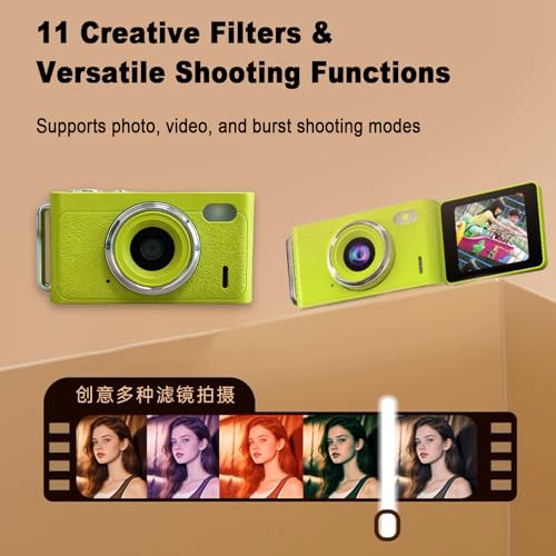 - 11 Creative Filters & Versatile Shooting Functions: The digital camera is equipped with 11 unique creative filters, and supports photo, video, and burst shooting modes. No complicated operations are required to unlock diverse creative styles, stimulating the photographic imagination of kids and beginners
