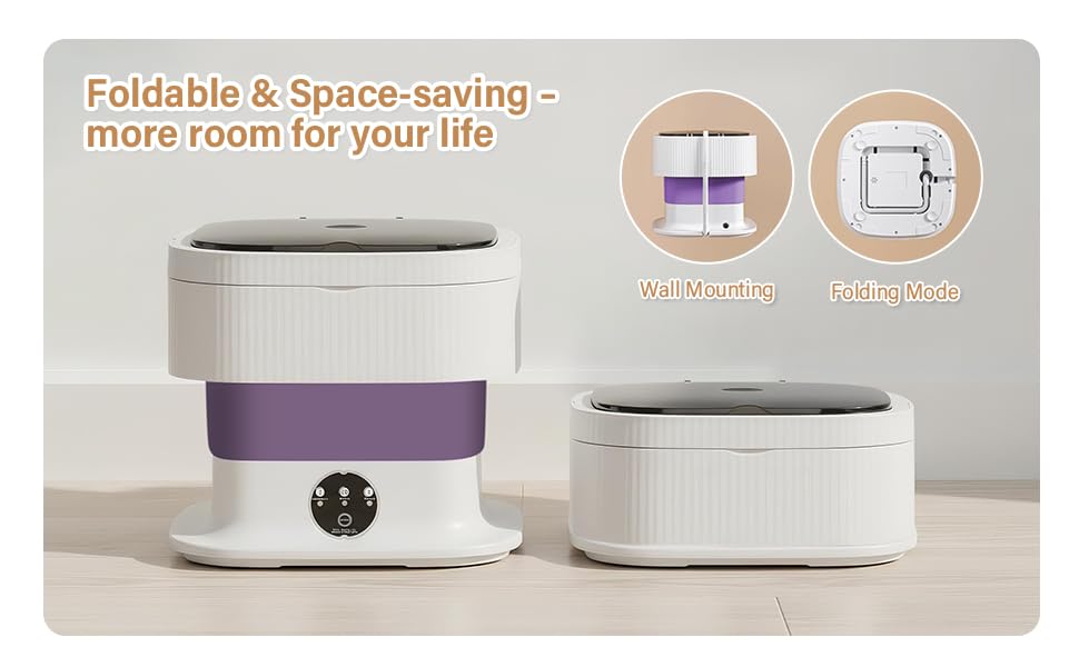 【Ultra-Portable & Foldable Design】This mini portable washing machine weighs only 1.8kg and folds down in seconds, making it ideal for camping, dorms, and compact apartments. Easily store it under a bed, inside a drawer, or carry it on your next trip