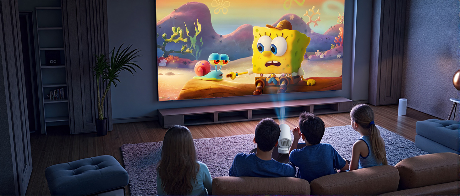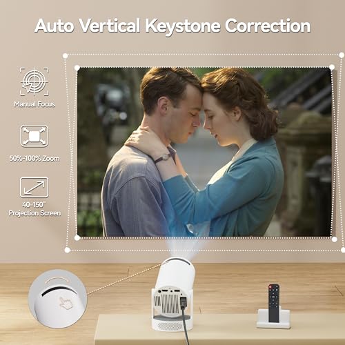 Effortless Setup & Flexible Viewing Achieve the perfect image from any angle with auto vertical and ±15° horizontal keystone correction, plus manual focus adjustment. Project a screen size from 40” up to 150” and enjoy cinematic viewing on your wall or even your ceiling.