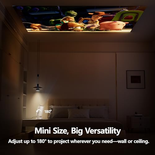 ⚡ Next-Gen Connectivity & 180° Rotation Enjoy faster, smoother streaming with WiFi 6 and connect wirelessly via Bluetooth 5.0 for headphones or speakers. The 180° rotating design makes it easy to project anywhere—on a wall, ceiling, or even your tent ceiling when camping.