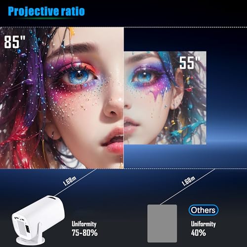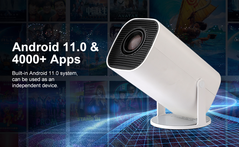 Mini Projector WiFi+BT5.0 Android11, Automatic Correction Vertical Direction,4K Video Support,Projection Size 40~150 Inch 180° Multi-Angle Adjustmen,Portable Projector for Bedroom,Living room