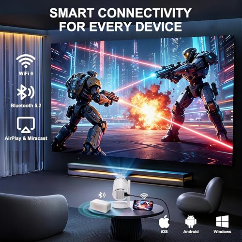 - Whether you are mirroring your phone screen, watching online content, or connecting wireless audio, this projector keeps everything in sync for an effortless big-screen experience at home or on the go.