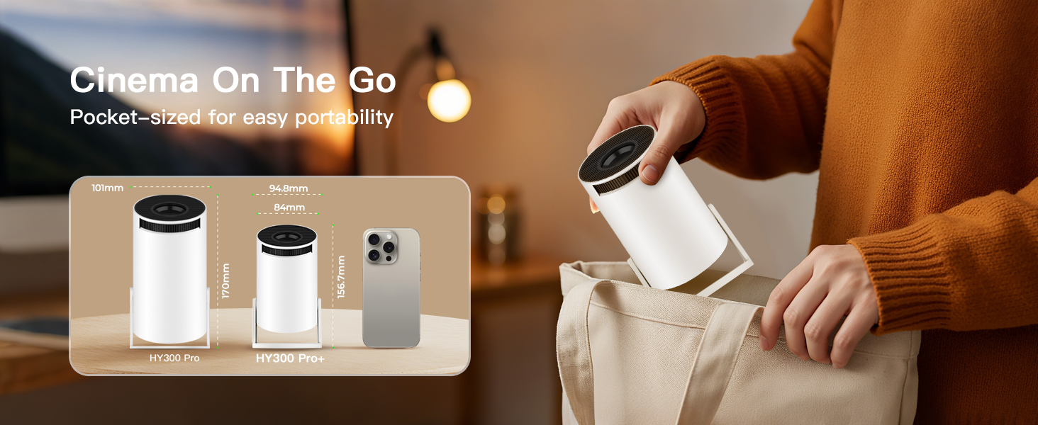 [Mini Size&Upgraded 300Pro+] Weighing just 350g (lighter than 300Pro Projector) and boasting a 300 ANSI brightness upgrade, this compact projector delivers stunning visuals anywhere. Its ultra-portable design makes it ideal for travel, dorm rooms, or cozy nights in. Elevate your viewing experience with enhanced brightness in a sleeker, more lightweight body!