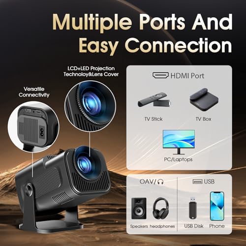 [4K, 1080P & 720P Support] Engineered with advanced LCD projection and HDR technology, the GM300 projector delivers exceptional contrast, accurate colors, and more lifelike images with a wider range of brightness and color. Perfect for movie nights, it fully supports video playback in 4K, 1080P, and 720P resolutions.