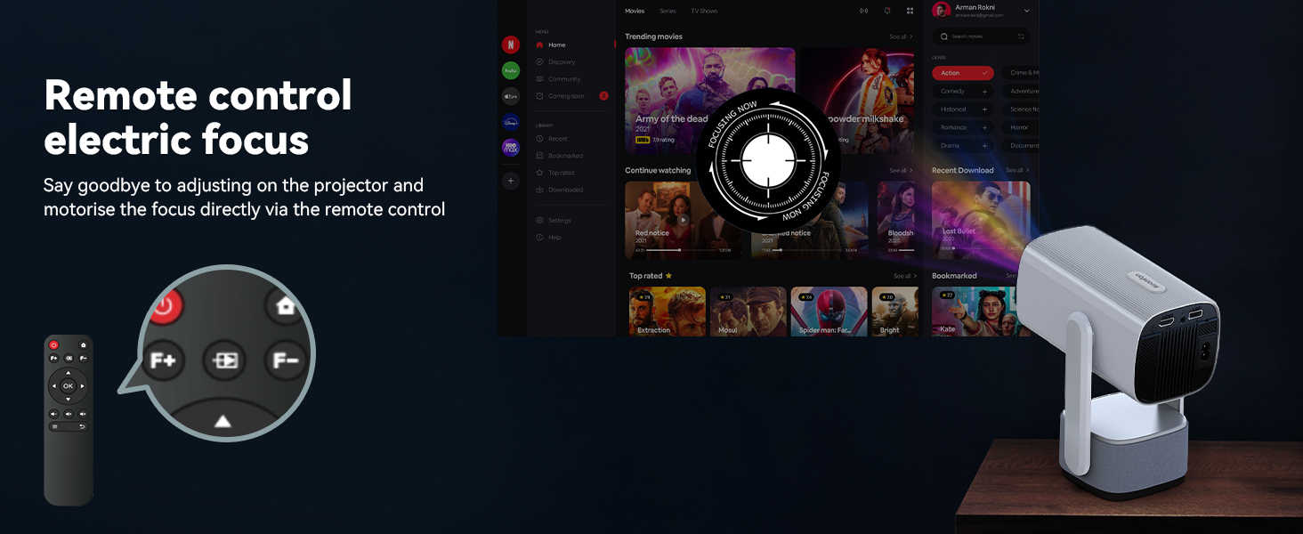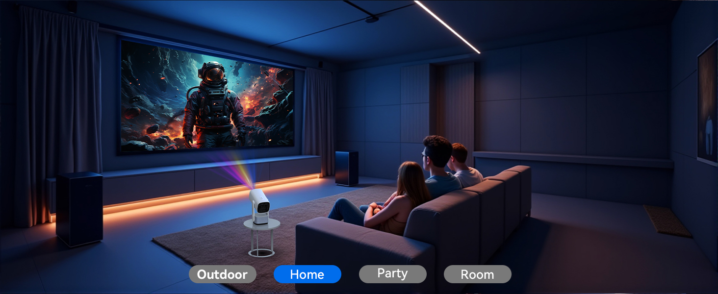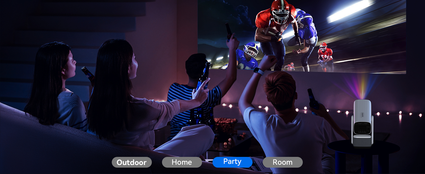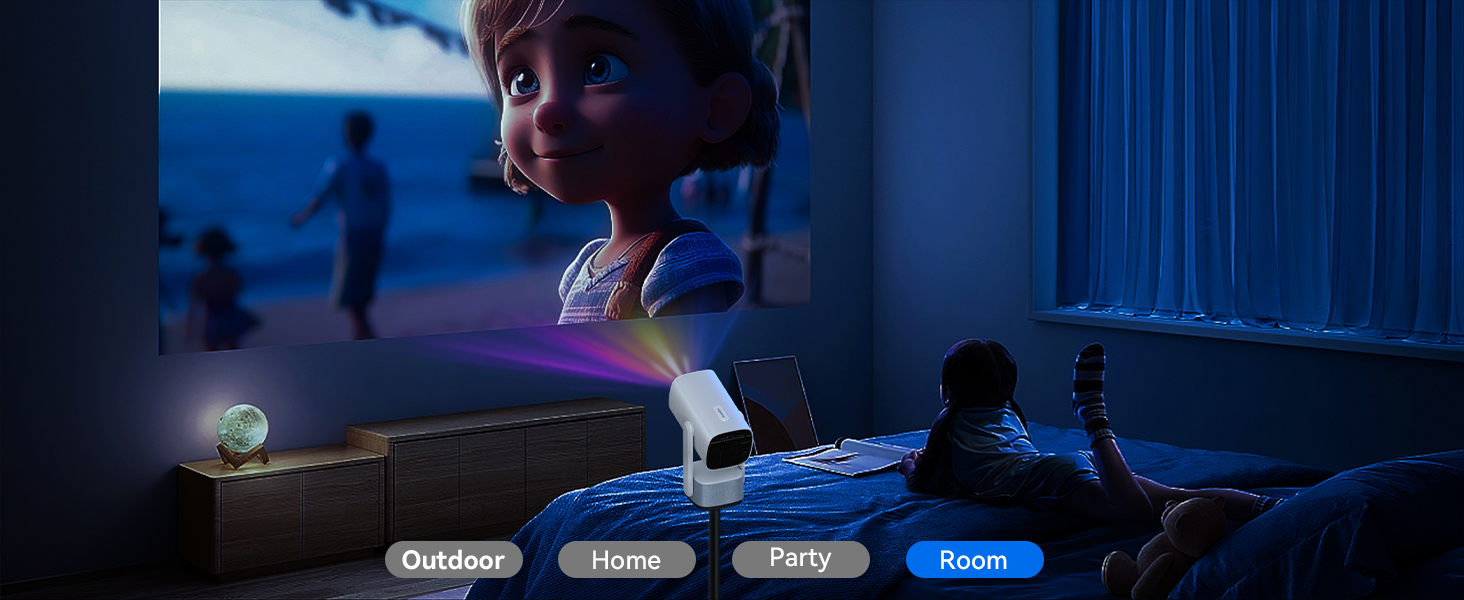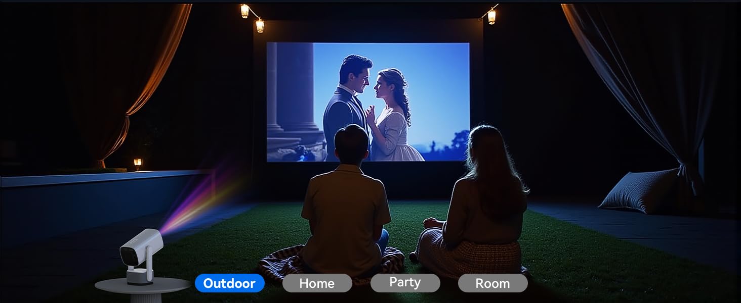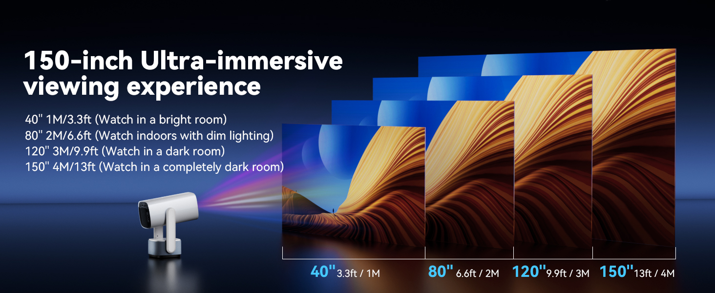 - [Supports HD 1080P, Create your own cinema]This mini projector can display screens from 40 to 150 inches, with a projection distance ranging from 3.3 to 13 feet. No time to go to the movies? Simply use the smart projector to cast content onto a 150-inch giant screen and easily create your own home theater. Get the popcorn ready and enjoy a wonderful evening with family and friends! Note: The smart projector is designed for relatively dark environments. A bright environment will significantly impact the viewing experience.