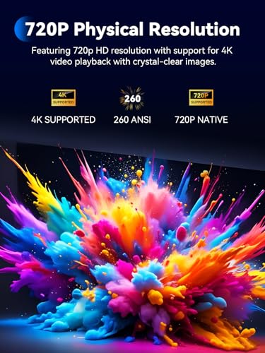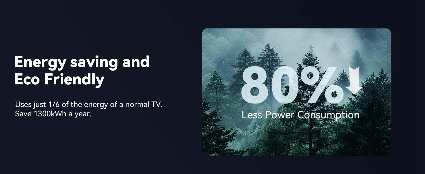 - [Advanced Eye Protection Technology and Long Warranty] Thanks to diffuse reflection technology, this laptop projector is gentler on the eyes compared to TVs, effectively preventing direct light damage. This home projector features the latest efficient heat dissipation technology, ensuring it remains compact and portable. The low-noise environment will not affect your viewing experience. Advanced technology minimizes bulb power consumption, extending the bulb’s lifespan to over 50,000 hours. The projector also comes with a two-year worry-free warranty and lifetime technical support. During the warranty period, we offer a replacement-only service, so you can enjoy longer-lasting entertainment.