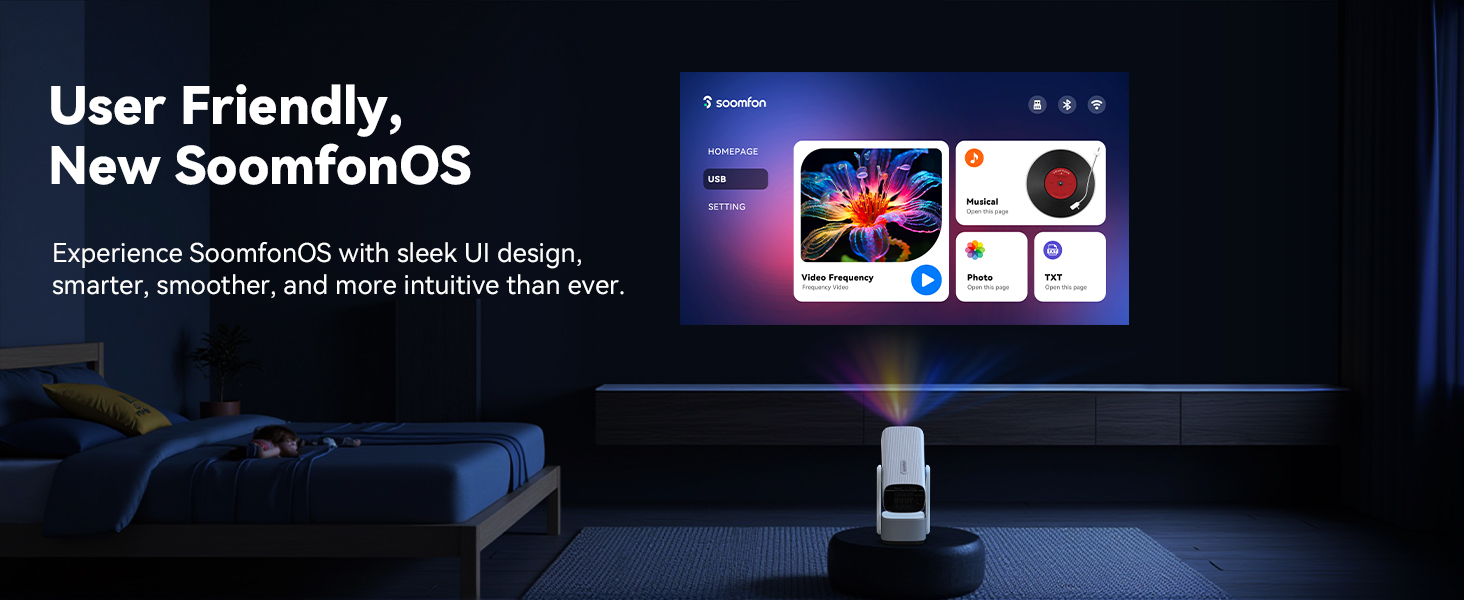 Mini Projector with Wifi and Bluetooth Full HD 1080P Support – SOOMFON Portable Phone Projector for Bedroom with 6W Speaker Electric Focus Auto Keystone, Compatible with TV Stick/HDMI/Laptop