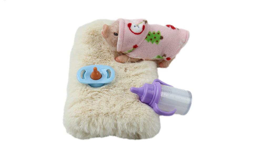 Fun and Cute Desk Decoration: This silicone pet pig comes with a sleeping pad, a feeding bottle, a piece of clothing, and a collectible simulation pig figurine pacifier. You can dress it up, feed it, or put it to sleep on your desk.