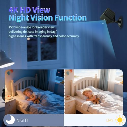 High Picture Quality & Ultra-wide Angle: Experience crystal-clear 1080P resolution and a 150° wide-angle lens, perfect for monitoring your home, pets, or valuables. This mini camera captures every detail in sharp HD, ensuring comprehensive coverage for indoor security