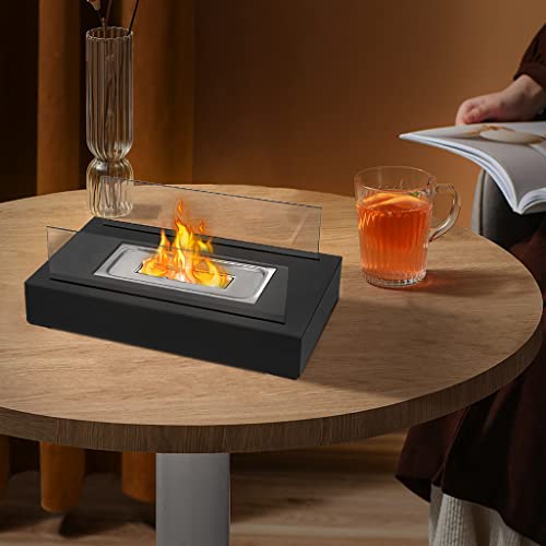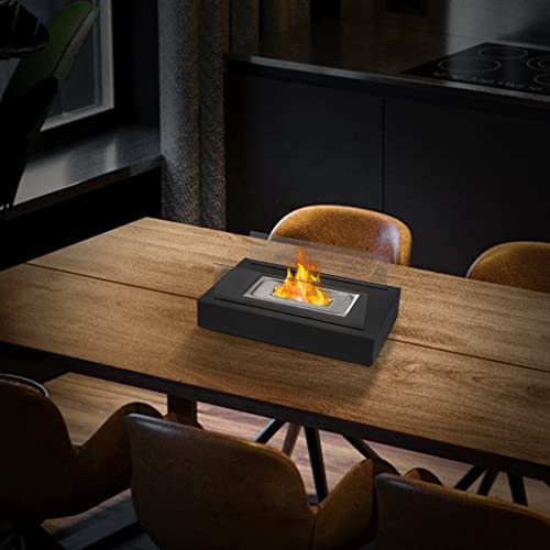Modern Black Firepit with Black Metal Housing (Rectangular with 2-Side Glass) – Stylish Outdoor Fire Bowl for Patio, Garden & Outdoor Living Spaces