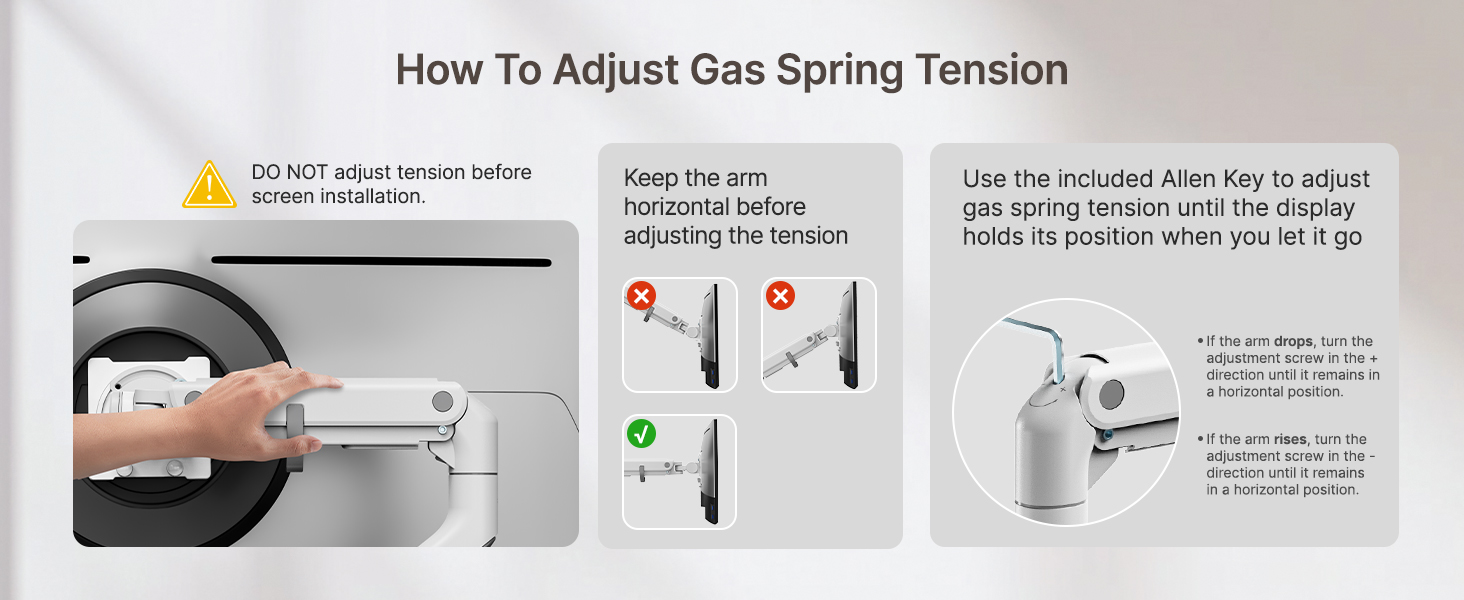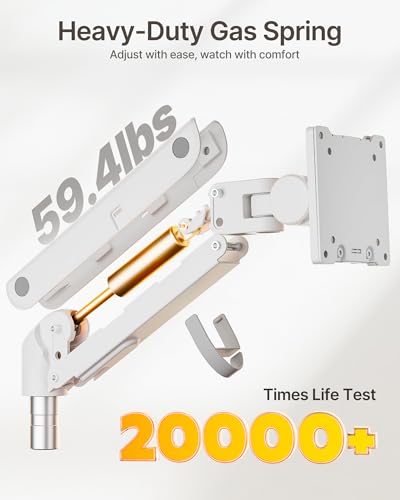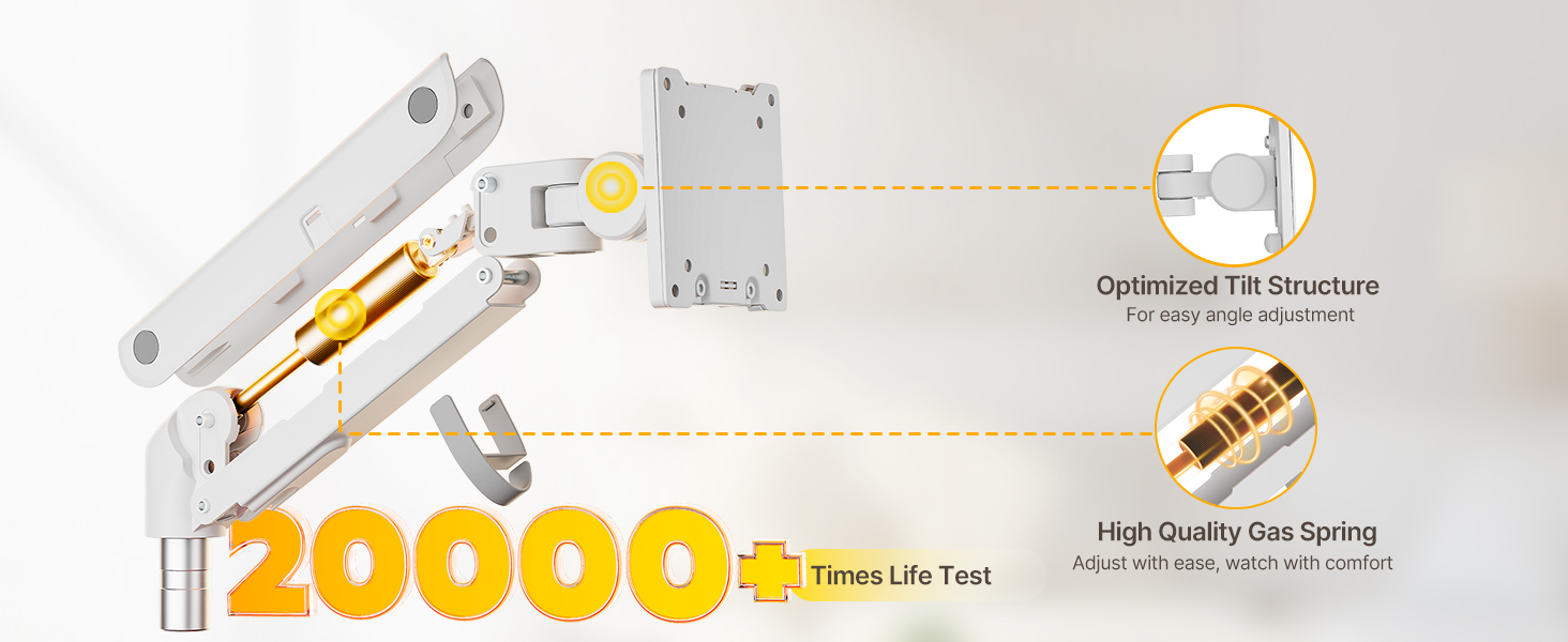 【Upgraded Construction】Crafted from premium steel and aluminium, this monitor arm is built for lasting durability. The gas spring mechanism has passed over 20,000 life-cycle tests to ensure long-term performance. It minimises wobble during use, keeps your screen steady, and features an upgraded 360° adjustable arm for greater flexibility and a wider range of viewing angles