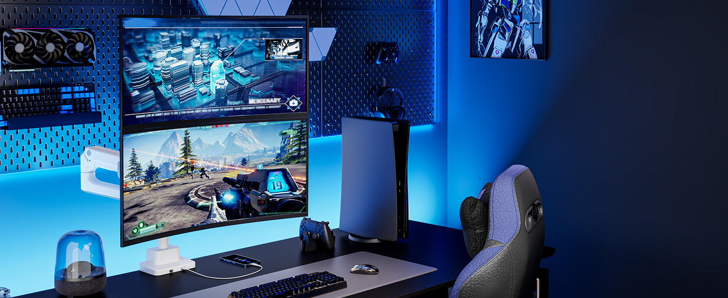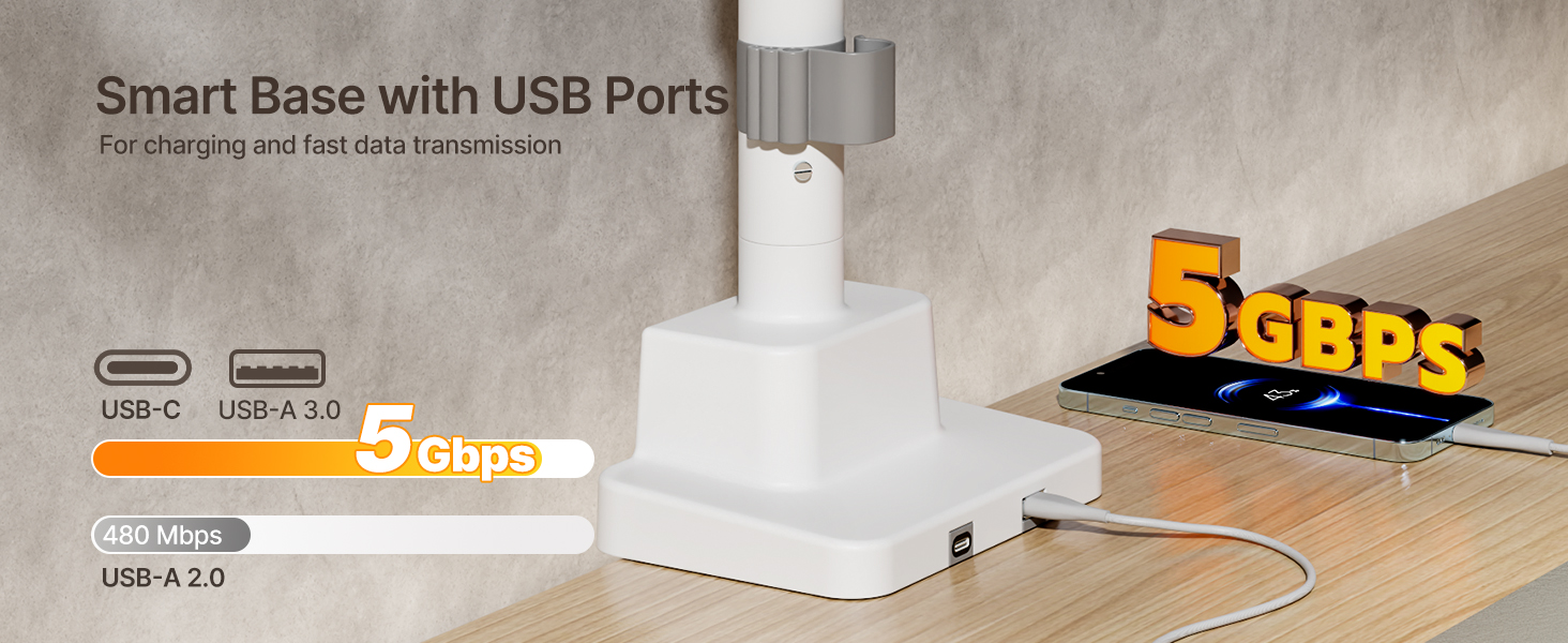 【Unique design】Purpose-built for convenience and organisation, this ultrawide monitor arm includes integrated USB-A 3.0 and USB-C ports for easy device charging and fast data transfer. Ideal for gaming setups, professional workstations, or compact home offices, it delivers outstanding performance while keeping your desktop tidy