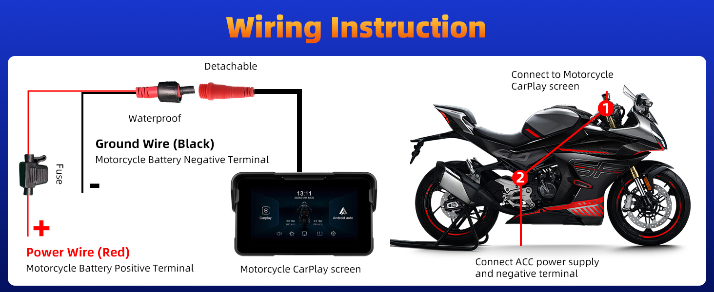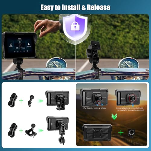 【Installation Tips & Reliable Customer Service】This moto carplay screen is easy to install and quick release, Our motorcycle carplay screen with 30-day money back, 12-months replacement service, 24-hours expert support team is available to assist on installation, functionality or any concern