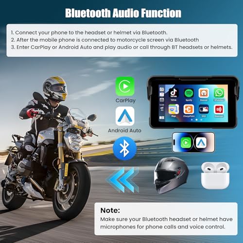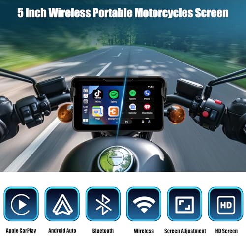 Motorcycle CarPlay Screen with Wireless CarPlay Android Auto,5 Inch IP68 Waterproof HD Touchscreen GPS Navigation Motorbike Portable Car Stereo Support Bluetooth Tran,Siri Voice Control