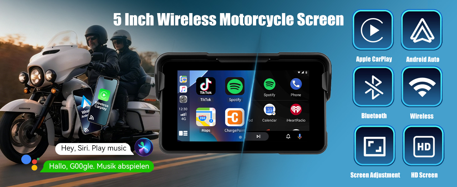 Motorcycle CarPlay Screen with Wireless CarPlay Android
