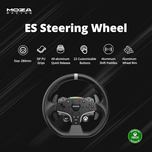 - ES Steering Wheel:This 11-inch round gaming wheel with durable ISF PU grips aluminum alloy rim, 22 customizable buttons for maximum immersion and extended use. The racing-level Quick Release system allows for effortless wheel rims changing.