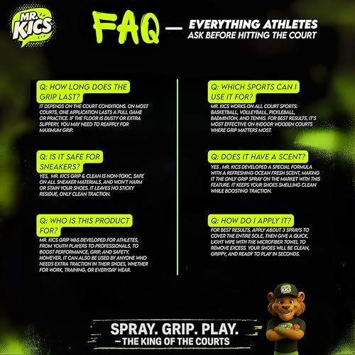 - SAFER MOVEMENT FOR ATHLETES: Prevent slips during jumps, pivots, and quick cuts on indoor or outdoor courts. Parents and coaches trust Mr. Kics shoe traction spray to help kids, teens, and athletes stay balanced, safe, and confident in every game.