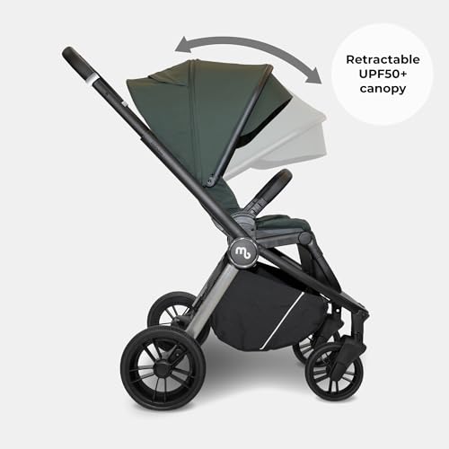 My Babiie MB450 Pushchair – from Birth to 4 Years (22kg), Parent & World Facing, 4-Wheel Suspension, Large Basket, XL Canopy, Foldable, Compact, Stroller with Footmuff, Rain Cover – Forest Gree