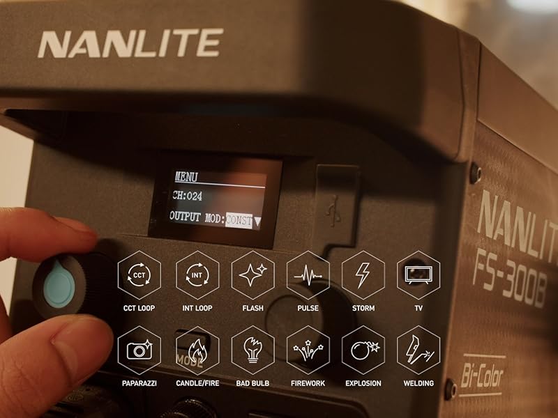 There are 12 built-in practical effects in FS-300B with customizable brightness, color temperature and speed, allowing for simulating different scenarios and bringing out high-quality lighting effects effortlessly.